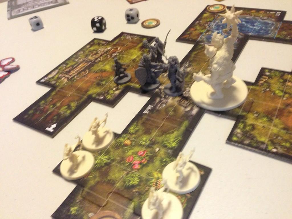 So I was pleasantly surprised and very excited when I heard that one amongst the group of lady librarians that I play boardgames with actually bought descent! We had a gaming session over the weekend and we brought it out for a go. All of them (except me) have not played Descent before so it was interesting to see how they interact and play the game. I have only played the 1st edition once when I joined a meetup in New York and it was an ok experience but took 2 or 3 hours to play.. The 2nd Edition was rather fast as it took just a little over an hour to setup and play. I, being the slightly more experienced gamer, took on the role of the overlord. On hindsight, I think I was a little too brazen being the overlord as I marched my boss creature up to the party of heroes to try to lay some hurt on them. I did manage to KO one of the characters though before they collectively brought me down. Components are excellent as usual of an FFG production though unpainted seems to leave something more to be desired. Gameplay is rather straight forward as you move, and if you can, fight. Roll some dice and see the results. Dice are also engraved so its easy to see the results of your role. The first introduction game though may not immediately capture the players in though this could have been bad Overlord-ing from my part. Still, I think this game will shine if there is a group of dedicated gamers that invest in their characters and want to play the campaign mode. I do hope that the gaming group can "level" up and get to like it enough to play campaign but we'll see. Players that do not prefer the co-op element should avoid this as it may get a little boring for them.