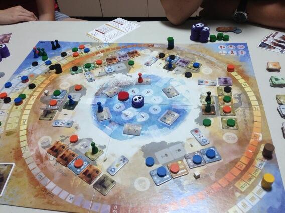 It is quite a fun game with good art, nice component pieces but not exactly dripping with theme. The scoring spaces make for a tense game as well because you need to monitor what your opponents are doing less they activate the scoring before you do.