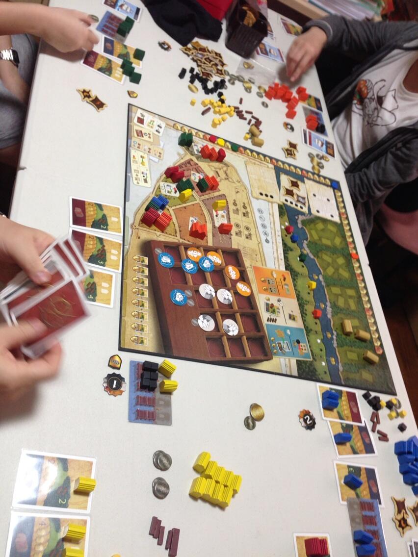 We played a rule wrongly in that whenever we harvested, we will remove the vineyard cards. But otherwise, we were pretty much spot on. Gameplay was fast and easy to manage and it feels like a medium weight game for me. The worker placement part can be quite competitive and often at least 1 player will be screwed and will have not much to do except to collect $1. Luck of the draw for the vineyard cards etc can be tricky to manage because near the middle of the game the cards I have been drawing does not benefit me at all. Worse, the demand card kinda dictates what you should do with your grapes but then again if you had prepared for it and have a wide variety of wines, that may not be a big issue. Money interestingly was quite important at the beginning of the game but became a moot point nearer the end after you have built most of the buildings.