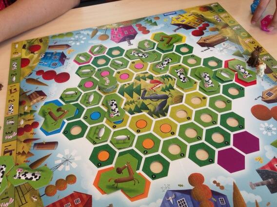 This is a light family game that plays in about 45 mins or so and plays up to 6 players. The objective of the game is to collect 1 of each animal: rabbit, sheep, cow and horse. First player to do so will win the game. In essence its a game about collecting enough resources, protecting your assets and making the right decision at the right time to get the animals and win the game (with a little dose of luck).