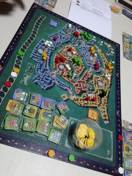 NOTE: I just played a game of 2 players and the Doge track is not really hotly contest as vs 4 player game. Much less shuffling and buildings won't run out. The 5 points bonus play a much bigger role in a 2 player game. I can't wait to try a 5 player and see how it plays out....