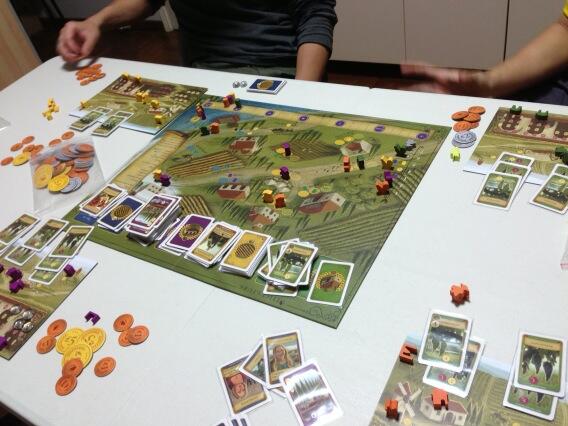 We played a rule wrongly in that whenever we harvested, we will remove the vineyard cards. But otherwise, we were pretty much spot on. Gameplay was fast and easy to manage and it feels like a medium weight game for me. The worker placement part can be quite competitive and often at least 1 player will be screwed and will have not much to do except to collect $1. Luck of the draw for the vineyard cards etc can be tricky to manage because near the middle of the game the cards I have been drawing does not benefit me at all. Worse, the demand card kinda dictates what you should do with your grapes but then again if you had prepared for it and have a wide variety of wines, that may not be a big issue. Money interestingly was quite important at the beginning of the game but became a moot point nearer the end after you have built most of the buildings.