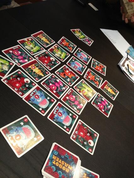 Its that simple! The complexity and thinky part comes from deciding where to play your card AND how the robots are scored. For example, if you have multiples of the same robot in the same column, you will score multiples of the points instead of just the points themselves. In addition, since what you are placing may help your opponent form the multiples he/she needs it can be used both to sabotage your opponent or accidentally helping him/her.
