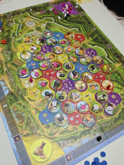 I first heard about this game from looking at European boardgame shops online and was intrigued by the artwork and gameplay. It was said to be similar to Kingsburg and I do love Kingsburg (it was one fo the earliest games I had owned) and was eager to give this a try. This game requires paying careful attention to what your opponents have but at the same time its not that easy to complete as the end game objectives are quite easily stolen by your opponents. There is a lot of to and fro and changing of ownership of tiles because with 3 dice, it seemed quite easy for us to reach most of our neighbouring destinations and thus kick each other out. It was through me keeping very quiet that I managed to sneak in a win. I can predict that this game may drag on too long for the weight of the strategy it provides. Unfortunately, for me this game did not click well and I was glad to have finished it. I am also glad to have not made the purchase. Try before you buy.