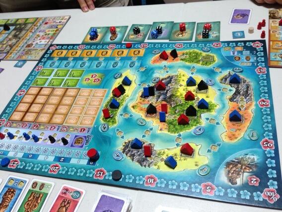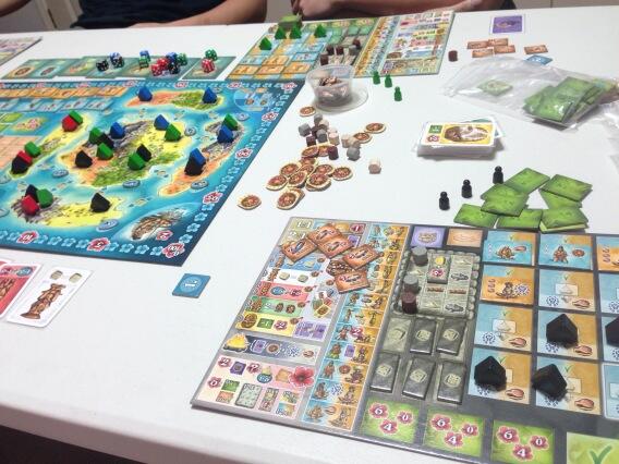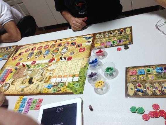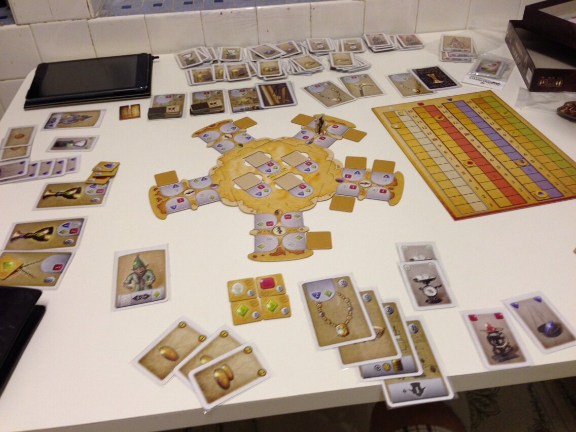 It is quite a fun game with good art, nice component pieces but not exactly dripping with theme. The scoring spaces make for a tense game as well because you need to monitor what your opponents are doing less they activate the scoring before you do.
