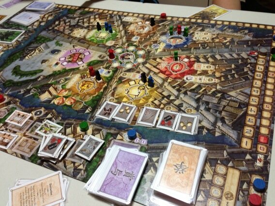 This is like a multi-player solitaire because the only interactions you will have will be the market where you can buy the stones and the limited scoring spots. But often I don't find myself being overly affected by these and was pretty much doing my own thing and playing my own game. Limited interaction.