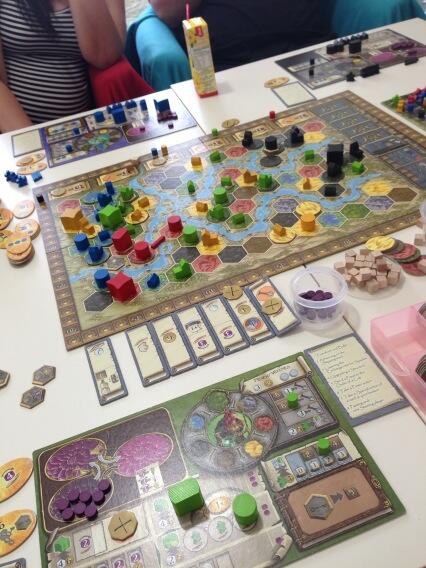 Ah my precious.... its been too long since I last played you :P I was the Witches this time and while I had a close fight with the Fakirs I managed to gain the 18 points at the end game after I upgraded my shipping and placed a dwelling strategically. I was losing badly on the cult track though and only managed near the end to send a few priests in to gain a few more points. The game did take pretty long with 5 players (almost 4 hours +) but I think with experience we can probably knock it down to 2 + hours. I think pre-planning is quite important for players and pre-planning with a backup plan is important to cut down on the length of time required. Still its a game I very much love with all the things that you need to plan and think of. I am looking forward to the expansion which will add new races. I wonder though if there will be a war like race or battle rules are introduced. But that may kinda defeat the purpose of building so close to each other for the magic benefit. The initial board is kinda interesting in that we were mostly clustered together except for one of my dwellings in the centre (I had thought this was usually the place where most players will be) and another player's dwellings which were all the way to the other side of the board. My witches' powers were also put to much good use as they enabled me to populate all over the board to fight the Fakirs and other "round" benefits like placing dwelling for 2 points I have also gotten much benefit from. Good game, good game :)
